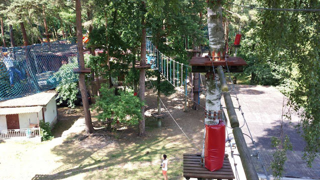 Odwiedziliśmy Polskie Morze, tak się nazywa park linowy. Jest on umieszczony na małym terenie, wiec przeszkody zostały umieszczone nad dachami, co daje fajny klimat. Przez drobną pomyłkę przy kasie, mogłem pochodzić trochę dłużej, bo dostałem gratis dwa dodatkowe przejścia.