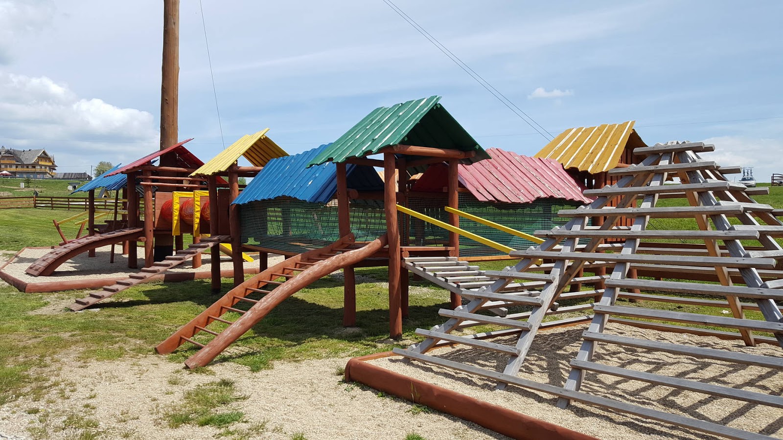 Jak tylko wjechaliśmy na parking ujrzeliśmy wspaniale przygotowany park linowy razem z innymi atrakcjami. Park jest częściowo na palach i przechodzi do lasu, gdzie znajduje się większość przeszkód.