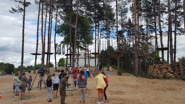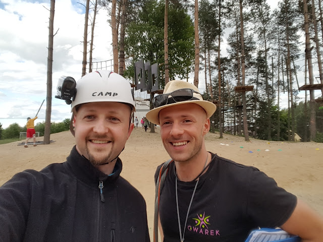 Po przybyciu zobaczyłem w jaki sposób grupy mają organizowany czas i jakie zadania muszą wykonywać. Przypomniały mi się odległe czasy gdy wyjeżdżałem na kolonie. Niektóre zadania były fantastycznie przygotowane na rozwijanie współpracy z innymi członkami grupy. Z tego co zauważyłem park został przygotowany specjalnie pod tego typu zadanie dla grup. Mamy tutaj dostępną tylko jedną trasę, którą uczestnicy muszą przebyć, przełamując swoje obawy lękowe i pracując nad balansem ciała.