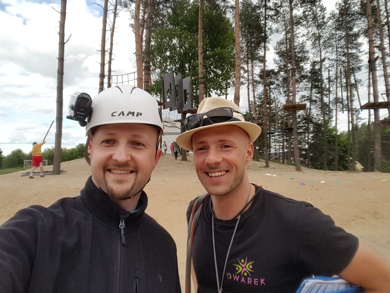 Dostałem prywatnego instruktora, który przedstawił mi cały regulamin i przeszkolił mnie w jaki sposób mam się poruszać po parku. Trasa składa się z 20 przeszkód. Co mnie zaciekawiło, to umieszczenie przeszkody "Dziury" na trasie. Wszystko ładnie wyglądało - w tym roku było odnawiane. W przyszłości ma powstać jeszcze zjazd tyrolkowy. Moją sugestią w przyszłości jest zrobienie trasy tandem- jest to trasa przeznaczona dla par, na przeszkodach trzeba cały czas iść razem i sobie pomagać.