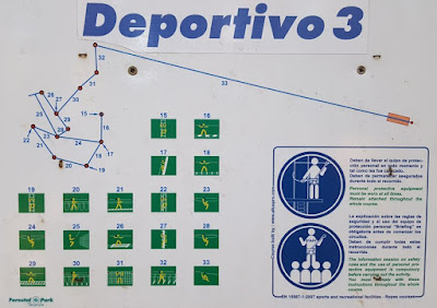W sobotę wybraliśmy się do parku, sam dojazd do niego był fantastyczny, ponieważ wjeżdżaliśmy pod górę krętymi ścieżkami i zatapialiśmy się w lasy sosnowe. Na samym początku już było zabawnie, ponieważ instruktorzy woleli, aby moja żona tłumaczyła instruktaż z hiszpańskiego na polski, niż cały instruktaż powtarzać jeszcze raz po angielsku. Potem zauważyłem, czym było to spowodowane. Co godzinę był prowadzony instruktaż i grupy były prowadzone po kolei trasami. W naszym przypadku szkolenie zaczęło się o 17, a o 19 park był już zamykany i przedłużenie instruktażu powodował skrócenie zabawy na trasach. Zwłaszcza, że instruktaż był długi i bardzo dokładny.