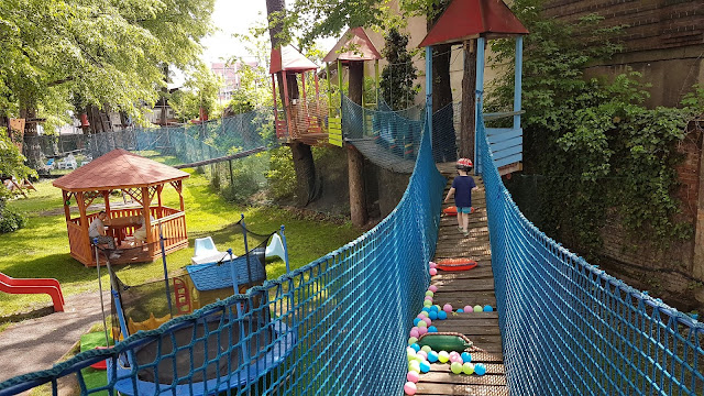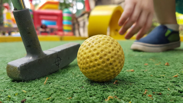 Jest tu sporo innych atrakcji dla naszych pociech. Oprócz trasy siatkowej Kanioland, mamy również trampoliny, zamki dmuchańce oraz Mini Golf. Fantastycznie się grało z synem w golfa. Jakie on świetne pozy robił i nie opuścił żadnego dołka. Tak to w czasie moich testów i nie tylko młody siedział w zamkach i podrywał księżniczki. Również dla najmniejszych pociech jest sporo zabawek, którymi mogą się tu bawić.