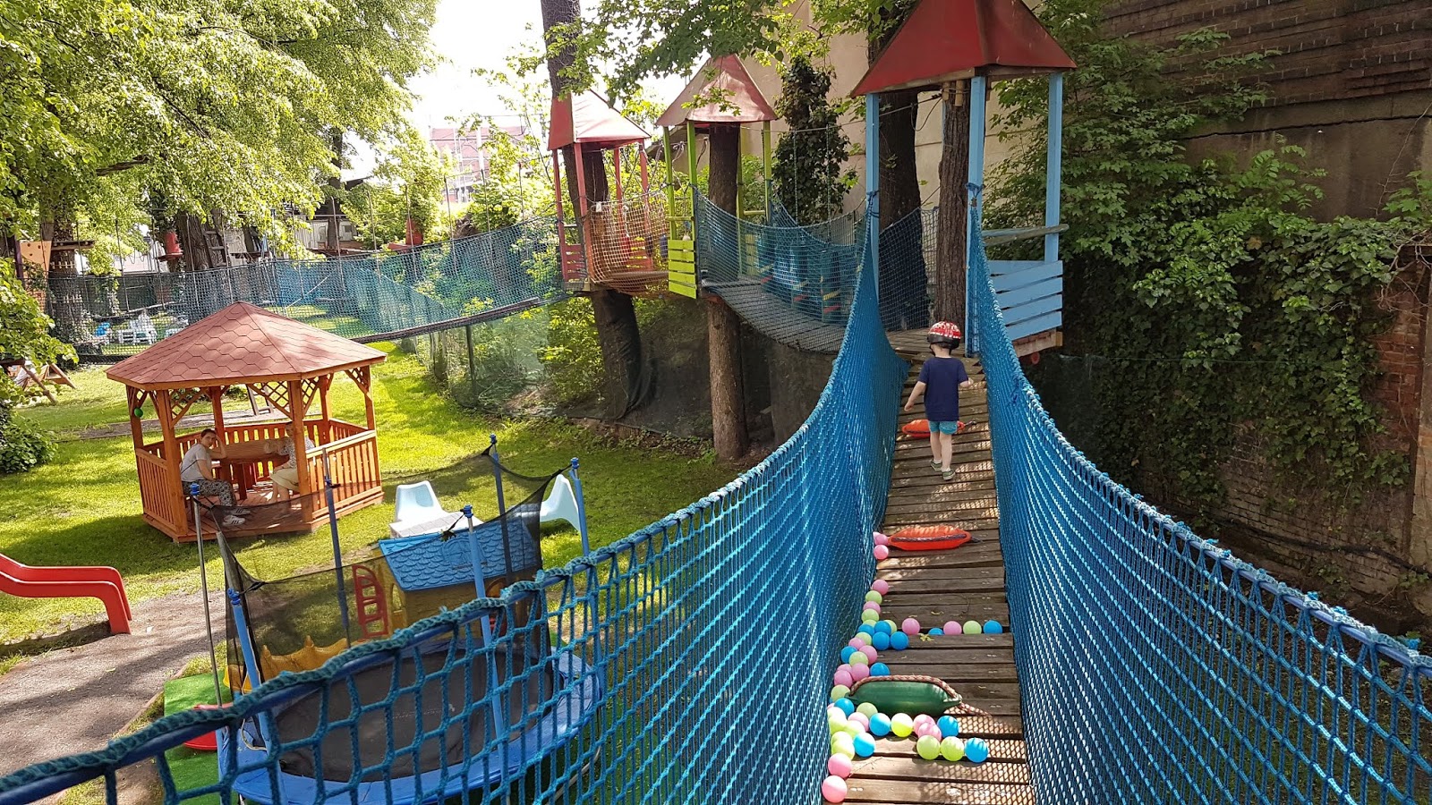 Park z zewnątrz wygląda ponuro, ale wejście do niego wywołało u mnie pozytywne wrażenie. Miejsce kolorowe, wesołe i przyjazne dzieciom. Tego się nie spodziewałem. Mamy tu dostępnych sześć tras. Dla najmłodszych są trasy; Kanioland to trasa siatkowa, jest umieszczona na sporej wysokości. Dzieciaki już od początku mogą przyzwyczajać się do wysokości. Jeśli dziecko chce spróbować przepinać się, to mamy tutaj idealną trasę Kaktusik. Zawieszona jest na wysokości 0,5 metra, rodzic może chodzić przy dziecku pomagając mu oswoić się z uprzężą. Kolejna trasa to Arizona jest na wysokości 4 metrów. Chyba jest to najczęściej odwiedzana trasa, z tego co zauważyłem. Dakota to nowy nabytek parku. Posiada tylko 10 przeszkód, ale to jakich. Mamy szczudła, sanki i świetną deskorolkę. Zostały nam jeszcze dwie trasy, dla odważnych; trasę Colorado zawieszoną na 10-12 metrach. Jest to trasa najtrudniejsza dla osób powyżej 145 cm i wymaga od nas dużej sprawność fizycznej. Ostatnia to trasa zjazdowa, chyba przez wszystkich lubiana. Najwyższy punk jest umieszczony na wysokości 15 metrów i nazywa się Eldorado.