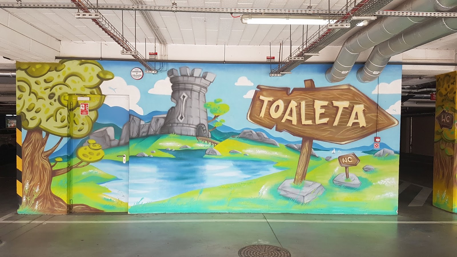 Nie udało nam się tylko skorzystać z Gigantycznego 13 metrowego Goryla i Karuzeli łańcuchowej. Maksio był za niski do skorzystania z tych atrakcji. No cóż musimy tu przyjechać jak młody podrośnie. Spodobało mi się jeszcze grafity, które prowadzi nas do toalety, bardzo fajna inwencja twórcza.