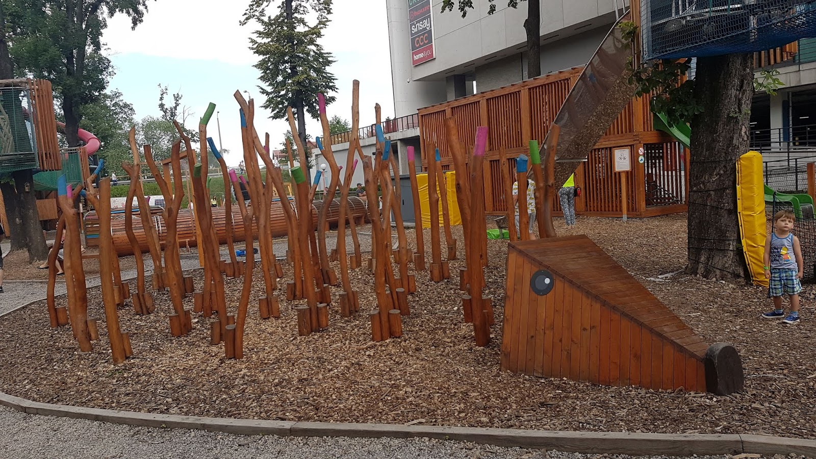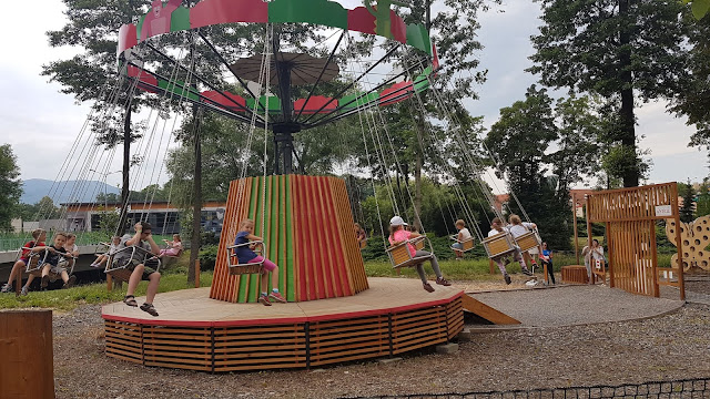 Rok temu powstał Eko Park - W Dechę, bardzo fajny obiekt z różnymi atrakcjami dla dzieciaków. Wtedy nie miałem okazji go odwiedzić. W tym roku, jak tylko dowiedziałem się, że dobudowano tam park linowy, to wiedziałem że kolejnym miastem do zaliczenia będzie Bielsko Biała. Obiekt jest umieszczony przy centrum handlowym Gemini Park, więc miejsc parkingowych mamy sporo.
