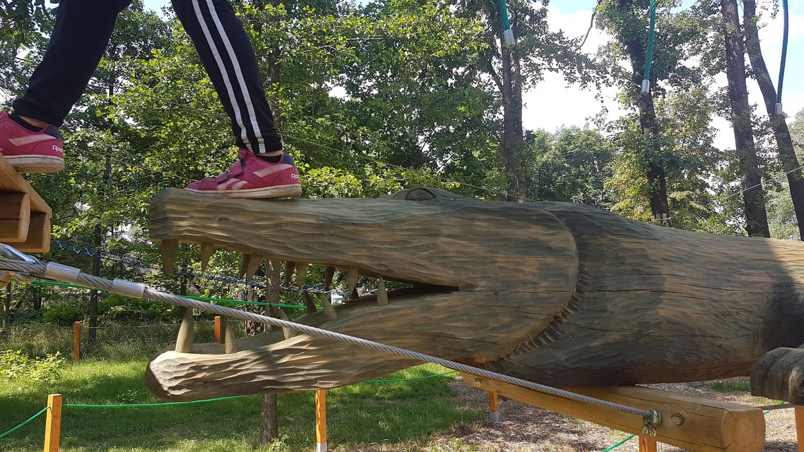 Jestem pod wielkim wrażeniem parku. Drugą cześć dnia spędziłem w Eko Park z młodym poszukiwaczem przygód. Tam jest jedna trasa siatkowa i sporo atrakcji, z których możemy skorzystać. Największą atrakcją jest Tajemniczy Krokodyl i to na niej Maksio spędzał najwięcej czasu. Zwłaszcza na ogonie. Mamy tutaj Kreatywną Piaskownicę, Szczudlanego Jeża, Tory wodne, Wielką Poduchę, Kostkarnię oraz Strefę kreatywnej zabawy. Można tak wymieniać w nieskończoność.