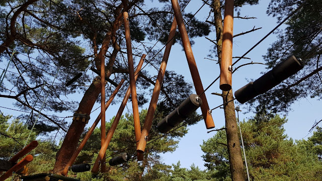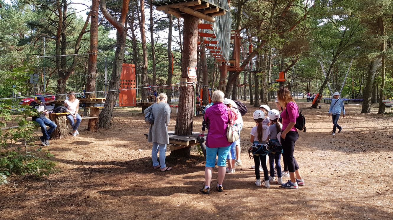 Park jest nowy, w tym sezonie wybudowany, a już przyciąga sporo zainteresowanych. Może to te ceny. Koszt zabawy jest wyjątkowo niski jak na strefę Bałtycką. Nad morzem jest zawsze drożej ze względów krótkiego sezonu wakacyjnego. Mamy tutaj dostępne trzy trasy. Dla każdego coś się znajdzie. Jest trasę żółtą dla najmłodszych, rodzic może pomagać swojemu dziecku. Trasa ma bardzo fajne przeszkody: Kładka koala, Sery szwajcarskie, Grzybki, Trawers po ściance.