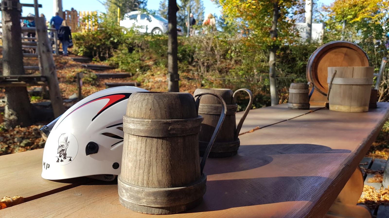 Dlaczego numer jeden? Ponieważ cały czas coś się tutaj zmienia. Obserwując ich Facebooka, widzę co chwilkę nowe przeszkody pojawiające się na trasach. Nowe przeszkody są unikalne i nigdzie jeszcze nie trafiłem na podobne. Właściciel stara się nas zaskakiwać i nie dopuścić, aby gość był tutaj znudzony. Drugim aspektem jest bezpieczeństwo. Jest tutaj zastosowany jak dla mnie najbezpieczniejszy system asekuracji niemieckiej firmy Bornack (który jest drogim systemem, ale bezpieczeństwo nie ma ceny) oraz belgijski Expoglider. System Bornack, dzięki komunikującymi się ze sobą karabinkami oraz systemowi kluczy znajdujących się na linach asekuracyjnych, pozwala uczestnikowi na 100% gwarancji prawidłowej asekuracji, nawet jeśli chciałby popełnić błąd. Expoglider jest systemem ciągłej asekuracji, przeznaczony dla młodszych uczestników i nie wymagający przepinania. Znajduje się on na trasie zielonej. Dodatkowo, nad całością trzymają piecze instruktorzy, którzy obserwują każdą trasę i pomagają w każdej problematycznej sytuacji.