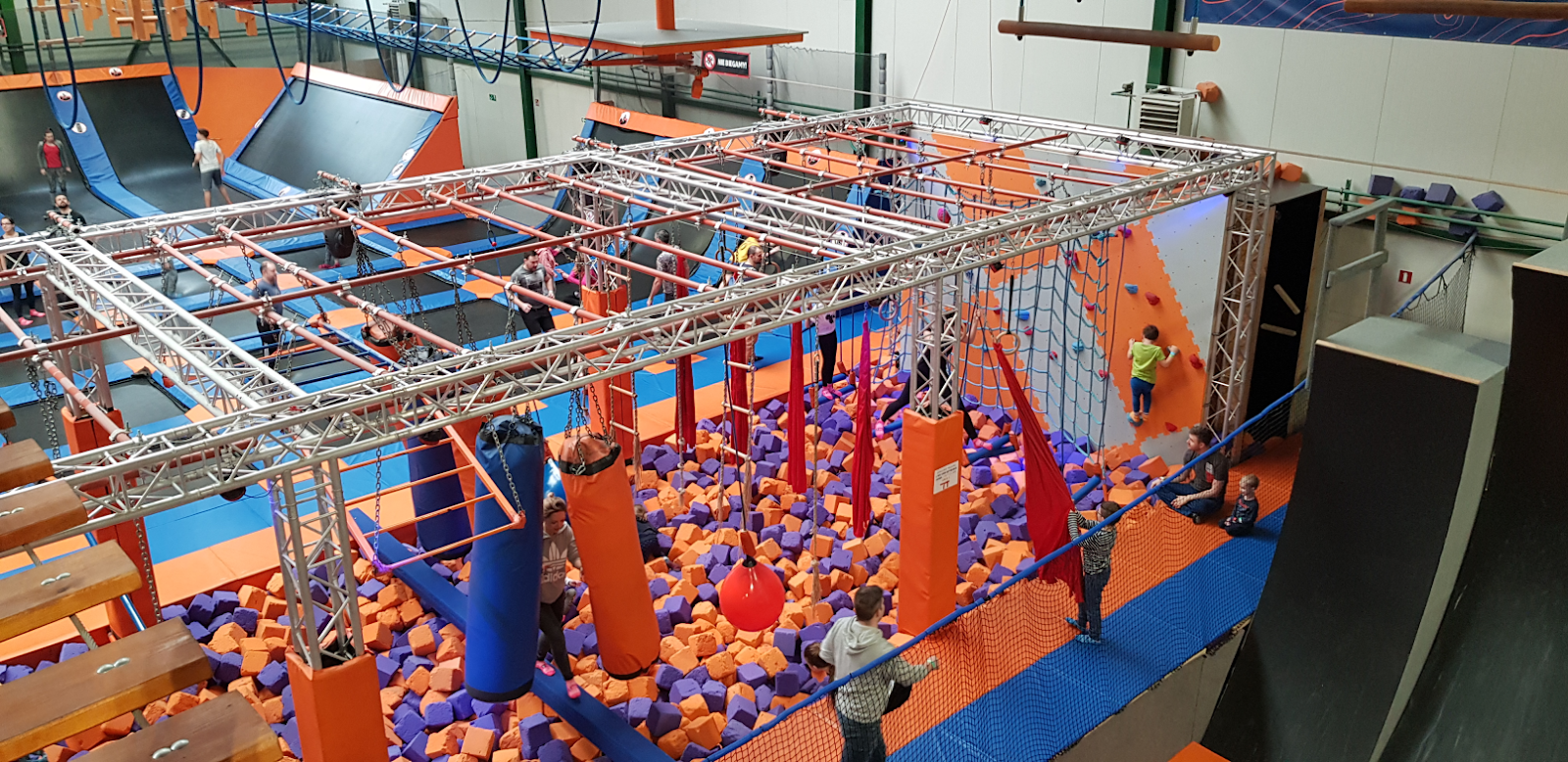 No i oczywiście park linowy który jest zawieszony pod sufitem. Jest to jeden wielki labirynt o zróżnicowanym poziomie trudności, który posiada 39 przeszkód. Nie musimy się tutaj przepinać, ponieważ jest tu zastosowana asekuracja ciągła marki Vertical Trek Innovations. Jak to labirynt, jeśli nie chcemy się męczyć z daną przeszkodą, wybieramy inną ścieżkę. Gwarantowane 2 godz zabawy.