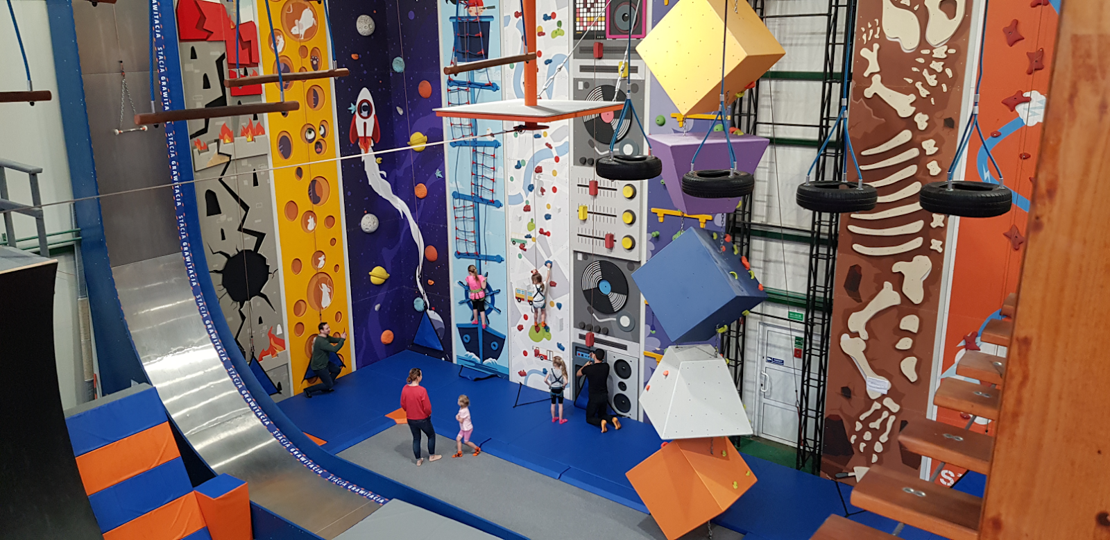Przyjechałem do parku trampolin Stacja Grawitacja, na wstępie zaskoczył mnie cennik. Płacimy bardzo niewiele, za to z czego możemy skorzystać. Jest tutaj sporo atrakcji i cena 25 zł za godz albo 70 zł za cały dzień jest rewelacyjna jak na Warszawę. Jest tu sporo atrakcji, z których możemy skorzystać. Przede wszystkim trampoliny, strefa gimnastyczna, strefa lotów. Ścianka wspinaczkowa posiada ponad 100 dróg o różnym stopniu trudności. Happy Climb to ścianka wspinaczkowa stworzona z myślą o najmłodszych wspinaczach. Wygląda rewelacyjnie, składa się z 17 kolorowych tematycznych dróg z auto-asekuracją. Tor Ninja na którym możemy ćwiczyć swoje ciało by stać się wojownikiem. Czeka tam na nas 20 przeszkód o różnym poziomie trudności.